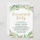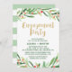 Cette carte d'invitation pour la fête de fiançailles de noël est parfaite pour un événement hivernal. Le design comprend une couronne verte à l'aquarelle avec des baies rouges et une élégante police de parties scintillant en faux or. Remarque : Ce design ne comporte pas de véritable parties scintillant en or. C'est un graphisme de haute qualité fait pour ressembler à brillant or brillant.