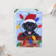 Labrador retriever fantaisie et drôle peignant peint par Naomi Ochiai du Japon. Un chiot noir adorable de Labrador saute de la cheminée. :) casquette de Père Noël sur la tête. Cartes et cadeaux de Noël noirs de chiot de Labrador pour les amoureux de les chiens qui aiment les laboratoires noirs ! ! Vous pouvez customiser le texte et plus !