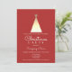 Invitation de fête de Noël d'entreprise rouge élégante et moderne, avec un arbre en pin à motif géométrique minimaliste en feuille d'or.