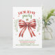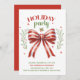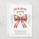Invitation festive de fête de Noël avec un joli noeud papillon coquette rouge et blanc et un texte rouge et vert vif. Personnalisez avec les informations de votre soirée. Contactez-moi pour obtenir de l'aide pour vos personnalisations ou pour demander des produits Zazzle supplémentaires correspondant ou coordonnant pour votre fête.