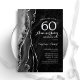 Invitation de célébration surprise de 60e anniversaire noir et argent agate. Design moderne élégant avec fond de géode de marbre d'agate aquarelle, faux paillettes argent et police de caractères script. Carte d'invitation élégante parfaite pour une fête d'anniversaire de mariage chic. Invitations Zazzle imprimées ou modèle de template numérique imprimable instantané.