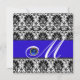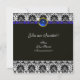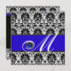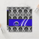 Invitation NOIR BLANC BLEU DAMASK MONOGRAMME Saphir