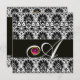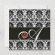 Invitation NOIR BLANC DAMAS MONOGRAMME Rose Fuchsia Améthyst