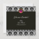 Élégant, classe, design floral unique, œillets noirs et blancs avec une pierre précieuse améthyste 3D brillante. Vous pouvez déplacer la pierre précieuse pour la personnaliser avec vos initiales et votre propre texte en tant que faire-part de mariage, cartes de table, save-the-date, annonce de fiançailles romantiques, cartes de remerciement, douches de mariée, fêtes d'anniversaire pour les 16 ans, anniversaire, remise de diplôme ou tout autre événement que vous souhaitez !