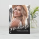Faire-part de remise de diplôme et invitation à la fête minimaliste simple. Le devant présente une photo pleine page avec un dégradé noir en bas, surmonté de texte blanc pour un look élégant et moderne. "Diplômé" est affiché dans une écriture manuscrite élégante, avec le nom du diplômé, "Promotion 2025" et le nom de l'école en dessous, dans des polices blanches classiques, assurant un design audacieux et lisible.