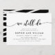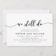 Invitation de fête d'anniversaire de mariage élégante avec les mots "We Still Do" dans un script cursif détendu en noir sur fond blanc qui est parfait pour célébrer n'importe quel nombre d'années. La carte a un dos noir avec des lignes blanches qui se chevauchent.