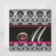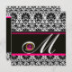 Invitation NOIR BLANC ROSE FUCHSIA DAMAS MONOGRAMME Améthyst