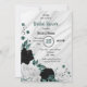 Invitation Noir blanc & turquoise bleu fleuri douche nuptiale