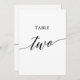 Cet élégant noir 5x7" table imprimable deux numéros de table est parfait pour un mariage simple. Le design neutre présente une carte minimaliste décorée de typographie romantique et fantaisiste. La carte s'imprime à l'avant et à l'arrière (double face). Les autres numéros de tableau de la collection sont vendus séparément.