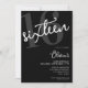 Une simple invitation moderne de 16ème anniversaire avec une élégante typographie de script de calligraphie et un design minimaliste en noir et blanc.