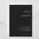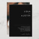 Ce noir minimaliste moderne | faire-part de mariage photo est parfait pour votre boho classe —. Son design abstrait simple et unique, accompagné d'un script minimaliste contemporain et d'une palette de couleurs noir et blanc, donne à ce produit une sensation de luxe formel élégant tout en restant simpliste, chic bohème. Gardez-le tel quel, ou choisissez de le personnaliser avec des illustrations ou des graphiques de votre choix. Vous pouvez également chercher d'autres produits dans cette collection pour réunir votre mariage entier !
