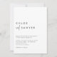 Ce code QR associe des fonctionnalités modernes à un design minimaliste. Avec un élégant script manuscrit et une typographie propre, cette invitation comprend un code QR scannable pour diriger les invités vers votre site Web mariage, la page RSVP, ou les détails de l'événement. Il est parfait pour les couples férus de technologie qui veulent une expérience client rationalisée. L'aménagement est simple, élégant et facile à lire. Tout le texte et le code QR peuvent être modifiés pour refléter votre événement unique.