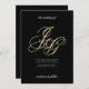 Un élégant monogramme noir et or tendance initie des invitations de mariage romantiques et élégantes.