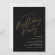 Simplistes et jolies invitations de fête d'anniversaire avec des accents de couleur or sur un arrière - plan noir. En-tête du texte "fête d'anniversaire" dans une police manuscrite de script. Convient à tout âge.