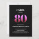 Invitation vos amis et les proches à une fête de 80e anniversaire surprise avec cette invitation minimaliste minimaliste d'anniversaire noir et rose.