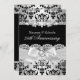 Invitation 25e Anniversaire. Élégant ruban à l'aspect perle argenté & design en damassé noir. Remarque : Toutes les images sont plates !