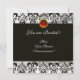 INVITATION NOIR SOIE DAMASSÉE BLANC MONOGRAMME RUBIS ROUGE