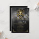 Cette belle et élégante conception, appelée invitation de boule de mardi gras de mascarade de Black et d'or, a un bel arrière - plan gris et noir de bokeh. Au centre supérieur il y a un masque de farceur d'or. Juste au-dessous d'il y a une frontière d'or pour votre texte fait sur commande pour le gala de style de boule ou de mardi gras de mascarade. Tous les éléments sont imprimés sur nos produits de haute qualité, ils n'incluent aucun vrai élément d'or, de bijoux, de graver, ou autre en refief de textile. Toutes les conceptions sont copyright Notable Expressions, Inc. tous droits réservés.