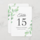 Feuilles d'eucalyptus aquarelle. Feuillage botanique vert. Nombres de table pour célébration de mariage. Le dessin se répète sur le verso.