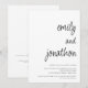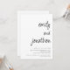 Noms de script moderne Code QR Mariage. Un design entièrement personnalisable où vous pouvez créer automatiquement votre code QR vers la page choisie de votre site web de mariage au verso, simplement en remplaçant l'URL d'exemple dans le modèle par le vôtre, ce qui en fait une option pratique pour que vos invités répondent et voient tous les détails sans avoir besoin de cartes de réponse et de détails séparées. Style informel minimaliste avec un script de style manuscrit pour vos noms. Changez les couleurs du texte et de l'arrière-plan selon vos choix via l'option "modifier davantage".