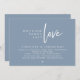 Announce and share your happily ever after in style with our modern dusty blue theme design (Nothing Fancy Just Love) wedding elopement celebration invitation card. It is ideal for couples who have decided to celebrate their best day. With its sophisticated yet playful design, this invitation is sure to set the tone for an unforgettable event. The invitation card features a modern and minimalist script design theme, adding a touch of timeless elegance to your celebration. Designed by TeeshaDerrick