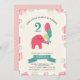 Cette adorable invitation à l'anniversaire présente une représentation graphique d'un éléphant rose tenant des ballons colorés. Le design est accentué de fleurs roses et vertes le long de la frontière. La conception offre du texte personnalisé pour l'utilisation de n'importe quel âge.