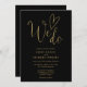 Ce faire-part de mariage de script minimaliste noir et or peut être personnalisé avec vos informations en typographie chic avec les détails de votre site mariage et votre code QR au verso. Conçu par Thisisnotme©