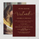 Photo moderne Le faire-part Virtual mariage dispose d'une seule photo sur le dos et de détails mariages sur le devant. Cette élégante invitation en Bourgogne et en or est parfaite pour informer votre famille et vos amis de votre prochaine cérémonie de mariage.