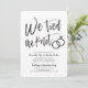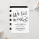 Après le grand jour et l'échange des anneaux, invitez vos invités d'honneur à une célébration. Cette invitation présente les mots "Nous avons noué le nœud" en lettres calligraphiées élégantes. Sur le côté, se trouvent une paire d'alliances. Sous ce graphique unique, un espace est prévu pour vos propres mots et informations concernant votre événement post-nuptial.