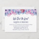 Élégante invitation de réception post-mariage aux fleurs roses et bleues poussiéreuses pour célébrer votre union récente.