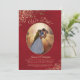 Cette invitation à une réception de mariage ou à une soirée après-mariage présente un titre élégant en écriture cursive indiquant "We Did!". Elle a un design simple mais élégant avec des lettres en écriture dorée fantaisie sur un fond de couleur rouge cramoisi marbré, et votre photo dans un cadre ovale entouré de volutes et de fioritures en faux-feuilles dorées ornementées. Parfait pour les mariages en petit comité ou les célébrations qui ont lieu après une cérémonie privée. Une excellente façon d'inviter votre famille et vos amis à célébrer votre amour.