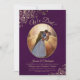 Cette belle invitation de réception de mariage ou de soirée après-mariage présente un titre élégant en écriture cursive indiquant "Nous l'avons fait !". Elle a un design simple mais élégant avec des lettres en écriture dorée fantaisie sur un fond prune profond violet, et votre photo dans un cadre ovale entouré de volutes et de fioritures en faux feuille métallique ornementées. Parfait pour les mariages en petit comité ou les célébrations qui ont lieu après une cérémonie privée. Une excellente façon d'inviter votre famille et vos amis à célébrer votre amour.