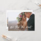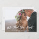 Cette carte simple et élégante d'annonce de fuite de noces présente une photo de mariage personnelle sur le devant, avec les mots "nous avons uni nos vies" dans un style manuscrit blanc et tendance. Le verso de la carte dispose d'un espace pour une autre photo, ainsi que d'un espace pour détailler les détails de votre fuite de noces, ou fournir des informations pour une réception ou une célébration après le mariage. Un design moderne et minimaliste qui est le moyen idéal pour informer vos amis et votre famille que vous êtes mariés !