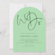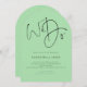 Nous Sommes En Train De Script QR Code Celadon Green Mariage Arch Forme. Un design de typographie simple mais élégant. Script stylish set We Do prend le devant de la scène.Le reste du texte que vous pouvez facilement personnaliser. Les couleurs du texte et de l'arrière - plan peuvent être modifiées si vous souhaitez mieux convenir à votre thème mariage via l'option customiser plus loin. Un code QR est à l'arrière pour que vos invités puissent répondre en ligne via votre site Web. Votre code QR sera automatiquement généré pour remplacer l'exemple de code lorsque vous entrez l'URL de votre site Web dans le modèle.