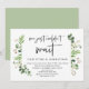 Moderne écriture noire, thème de verdure de jardin d'été, carte d'invitation de mariage en fuite (Nous n'avons pas pu attendre). C'est parfait pour votre réception de mariage en fuite / fête de célébration après le mariage. Ajoutez vos détails dans une police / lettrage noir assorti.