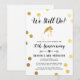 Une invitation simple et élégante pour une célébration d'anniversaire de mariage. Des points en feuille d'or entourent la silhouette d'une mariée en feuille d'or. Les couleurs du fond et de la police peuvent être modifiées pour correspondre au thème de votre événement.