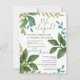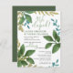 Nous nous sommes enfuis Annonce - Invitation à la réception : feuilles de thé aquarelles peintes à la main avec verdure de jardin botanique. Typographie moderne tendance avec champs de modèle à modification facile. Le choix de la police, la mise en page et les couleurs peuvent être modifiés selon le style et le goût.