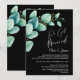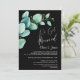 Invitez vos amis et vos proches à votre réception post-mariage avec cette invitation noire aux feuilles d'eucalyptus vert aquarelle pour célébrer votre mariage récent.