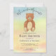 Cette mignonne invitation à Baby shower Couple est décorée d'un ours en peluche aquarelle et d'un arrière - plan coloré avec les mots "on peut attendre!" Facile à personnaliser. Utilisez l'outil de conception pour modifier la taille, le style ou la couleur du texte. Parce que nous créons notre oeuvre, vous ne trouverez pas cette image exacte d'autres designers. Aquarelle originale © Michele Davies.