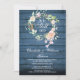Avec une jolie guirlande de fleurs de verdure à l'aquarelle, cette invitation chic de renouvellement de vœux botanique peut être personnalisée avec vos informations spéciales d'anniversaire sur un fond de panneaux de bois rustique bleu. Le verso présente une guirlande florale assortie encadrant vos dates d'anniversaire sur un fond de panneaux de bois rustique. Conçu par Thisisnotme©