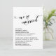 Voici un choix amusant et simple pour vos besoins de célébration post-mariage. Sur un fond blanc modifiable, j'ai placé un graphique typographique qui indique "nous sommes mariés" avec une police script élaborée ornée de cœurs. En dessous, vos informations apparaissent dans une police simple en majuscules. Utilisez les champs de modèle pour ajouter vos propres informations et cliquez pour personnaliser davantage si vous souhaitez apporter d'autres modifications. Toutes les couches sont déverrouillées pour vous permettre de contrôler le positionnement et la taille comme vous le souhaitez.