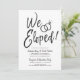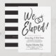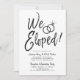 Après le grand jour et l'échange des anneaux, invitez vos invités les plus honorés à une célébration. Cette invitation présente les mots "Nous nous sommes mariés en secret" en lettres de fantaisie. Sur le côté, se trouvent une paire d'alliances. Sous ce graphique unique se trouve un espace pour vos propres mots et informations pour votre événement post-nuptial.