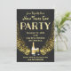 Nouvel An Invitation De Soirée. J'ai conçu cette carte avec un arrière - plan presque complètement noir. La fête s'ajoute avec un élément de fausse parties scintillant, suivi de la parties scintillant dorée, du champagne et des lunettes. Le dos de la carte a aussi une parties scintillant dorée. Élégant, raffiné et minimal. Faisons la fête ! Bonne année. Personnalisable . © Rosemarie Guieb