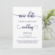 Nouvelle Date Reportée Mariage Marine Blue Script Invitation