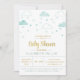 Invitation Nuages et Coeurs Baby shower bleu et or