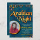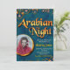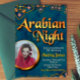 Plongez dans un monde de mystère et soyez enchanté par cette invitation à une soirée arabesque. Cette invitation a été rendue spéciale en utilisant une couleur de fond captivante avec des décorations dorées et diamantées pour capturer la vibrance et l'attrait d'une soirée sur le thème arabe.