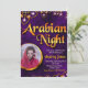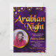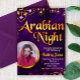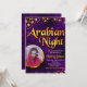 Entrez dans un monde de mystère et soyez enchanté par cette invitation à une soirée arabesque. Cette invitation a été rendue spéciale en utilisant une couleur de fond captivante avec des décorations dorées et diamantées complémentaires pour capturer la vibrance et l'attrait d'une soirée sur le thème arabe.