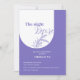 Donnez le ton pour une soirée magique avec notre "Nuit de la Lavande avant l'invitation". Avec son arc captivant orné d'une délicate fleur de lavande et de riches teintes violettes, cette invitation exhale l'élégance et la romance. Sous l'arc enchanteur, les détails de l'événement sont élégamment exposés, accompagnés des noms de la mariée et du marié, ajoutant une touche personnalisée à cette occasion spéciale. Invitation vos invités à se joindre à vous pour une nuit inoubliable remplie d'amour et d'anticipation.