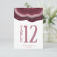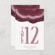 Tous les designs mariages ne sont pas égaux. L'agencement asymétrique des pièces de cet ensemble mariage frappant prouve que ce n'est pas une mauvaise chose ! Des bandes de couleur ondulées, allant du bordeaux au rose doux et gris, avec un centre de cristal scintillant, forment un accent géode/agate sur la plupart des pièces de l'ensemble. La carte "Numéro de table" mariage qui apparaît ici contient les informations ci-dessus ainsi qu'un modèle pour ajouter vos noms et votre date de mariage. Recherchez ID647 pour voir toutes les pièces de coordination de cet ensemble.