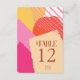 Le blocage Abstrait des couleurs dans une palette de couleurs audacieuses de rose chaud, orange mandarine et jaune doré fournit un arrière - plan saisissant pour les pièces de cette suite mariage contemporaine. La carte du numéro de table mariage est un atout de taille dans la décoration des tables mariages. Ajoutez vos noms, date du mariage et numéros de table à l'aide du modèle fourni. Recherchez ID740 pour voir d'autres options de couleur et d'autres produits avec cette conception.